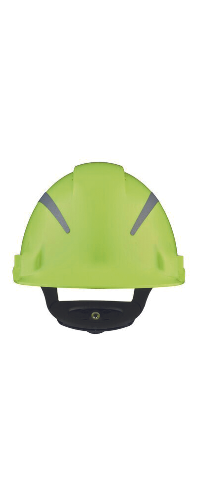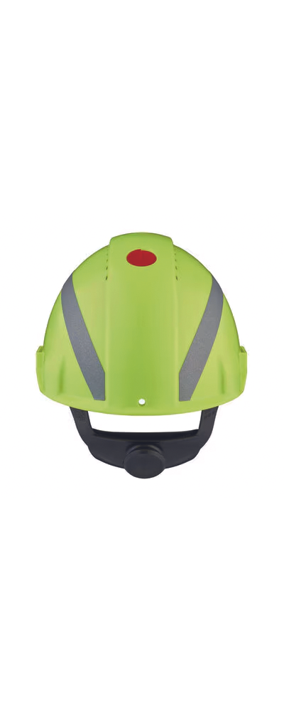 3M™ ochranná prilba G3000NUV-R-GB je Hi-Viz (výstražná) ochranná prilba s odvetrávacími otvory rozloženými na velké ploše nabízející maximální pruchod vzduchu pro pohodlí uživatele; je opatrena reflexním materiálem Scotchlite™ a plastovou potní celovou páskou pro zajištení pohodlí; vyznacuje se náhlavním krížem s nastavovacím koleckem, zaobleným tvarem s krátkým kšiltem poskytujícím lepší výhled smerem nahoru; je vybavena 3M™ Uvicator™ indikátorem upozornujícím na nadmerné vystavení UV zárení