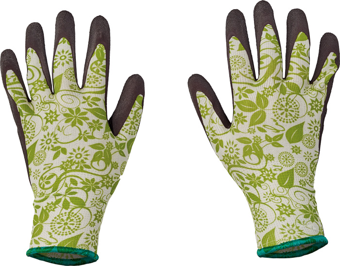 Bezešvé rukavice z nylonu s pružnou manžetou, máčené v pěnovém latexu.
