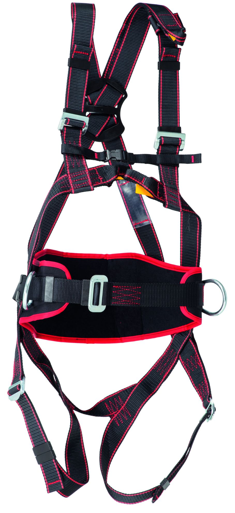 Zachycovací postroj LX2 XXL se širokou škálou použití, se zadním a předním kotvícím prvkem, polohovacím pásem s bočními oky, nastavitelnými ramenními a stehenními popruhy a prodlouženým popruhem k zadnímu záchycovacímu prvku EN 361, EN 358