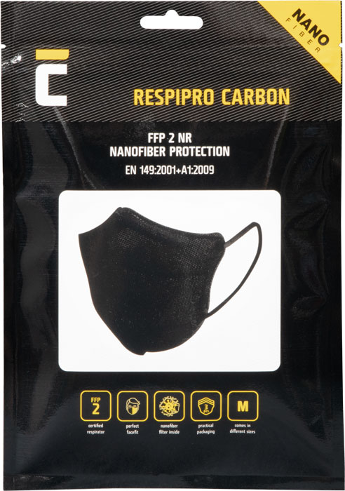 Antivirový nano respirátor FFP2 RespiPro Carbon zajišťuje díky nanovlákenné membráně záchyt virů, bakterií, prachu, smogu, pylu a al ergenů. Vrstva aktivního uhlí - carbonu eliminuje pachy. Respirátor má unikátní anatomický tvar, díky kterému perfektně padne na obličej a nedochází tak k nežádoucímu podsávání vzduchu. Ideální volba pro profesionály v povoláních, která kladou důraz na bezpečnost, jako jsou zdravotníci, záchranáři, hasiči, vojáci či policisté. Pro lepší přizpůsobení využijte plastovou sponu na sepnutí gumiček za hlavou, která je součástí balení. Dostupný ve dvou velikostech (M, L) a dvou baleních (3 kusy, 25 kusů).