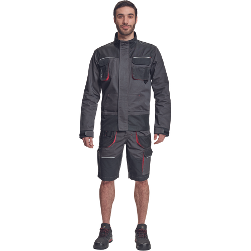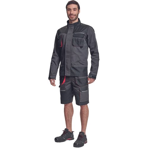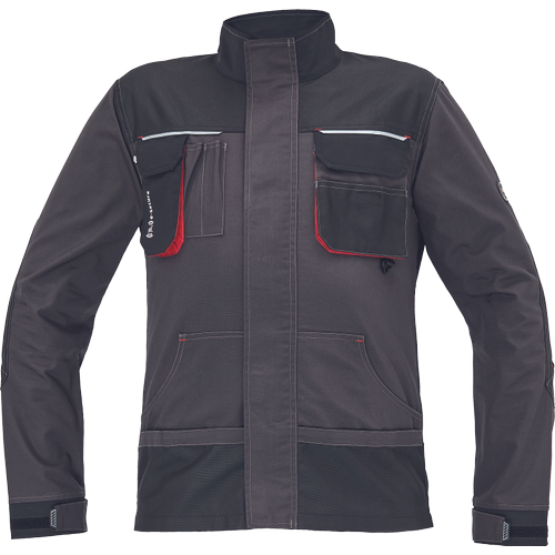 • pánská pracovní bunda • zapínání kryté légou na suchý zip • 2 přední kapsy • 2 náprsní kapsy • 1 náprsní e-secure kapsa na mobilní telefon • Oxford 600D zesílení loktů a ramen • reflexní prvky • kontrastní prošití
