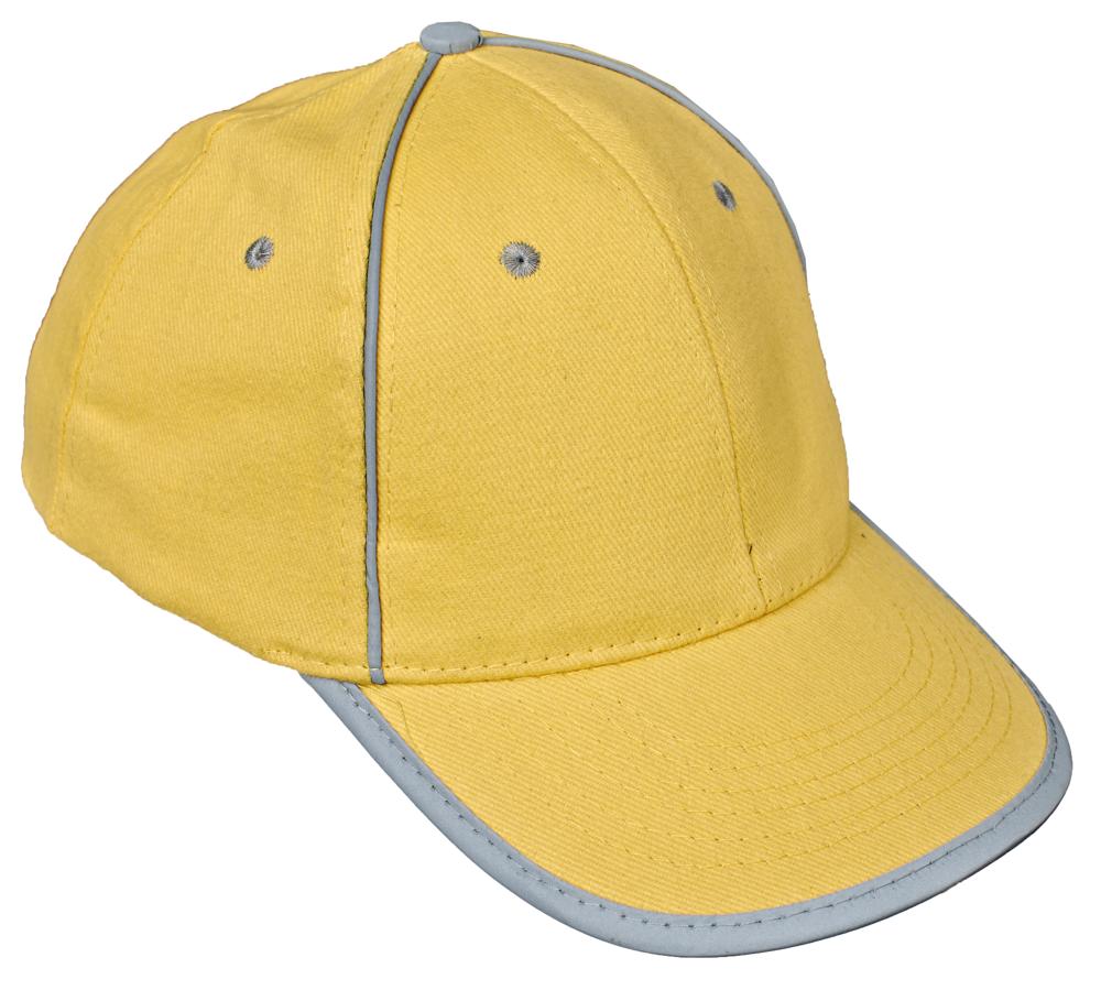 Čepice baseballového typu s reflexními doplňky a regulací velikosti pomocí suchého zipu.