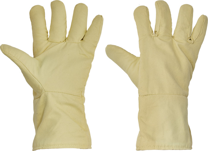 Dvouvrstvé rukavice z materiálu aramid (320 g/m2), s ochranou před kontaktním teplem do 250 °C, krátkodobě i do 500 °C.