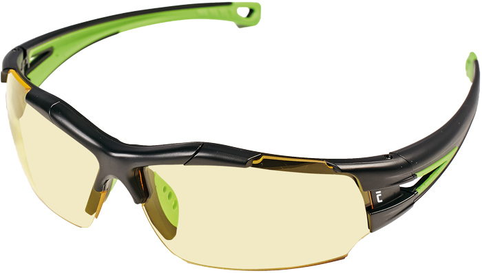 Brýle sportovního designu s polykarbonátovým zorníkem třídy 1F dle EN166 Zorník s ochranou proti poškrábání a proti zamlžení. Ochrana proti letícím částicím s nízkou energií. Měkký nosní můstek. Kouřový zorník s protislunečním filtrem dle normy EN 172.