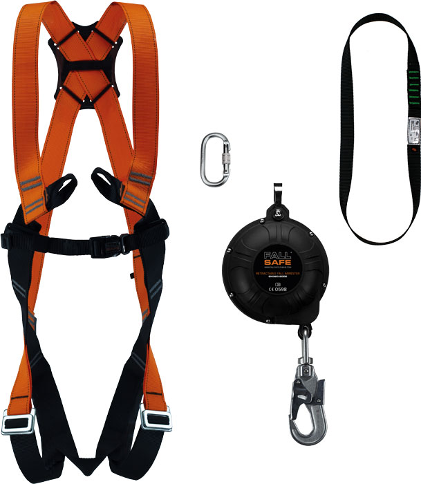 Set pro práci ve výškách samonavíjecí zachycovač 7m, postroj karabina a smyčka. Vertikální a šíkmý pohyb
