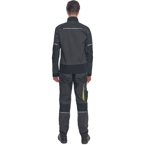 pánské pracovní kalhoty s pružným pasem a multifunkčními kapsami; Oxford 600D zesílení kolenních kapes pro vkládání ochranných nákoleníků; odolné trojité prošití nohavic a sedu; reflexní prvky; nastavitelná délka nohavic.