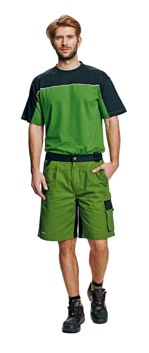 • kvalitní dvoubarevné pracovní tričko s krátkým rukávem • střední lem průkrčníku ze žebrového úpletu s 5% podílem elastanu