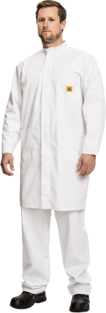 antistatický plášť se stojáčkem; krytý légou; dlouhý rukáv