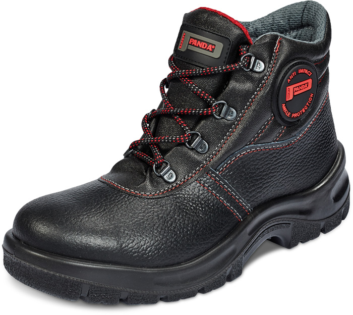 Bezpečnostní kotníková obuv s ocelovou tužinkou, antistatickou a protiskluzovou podrážkou rezistentní pohonným hmotám, absorpcí energie v patě a svrškem z prodyšné kůže.