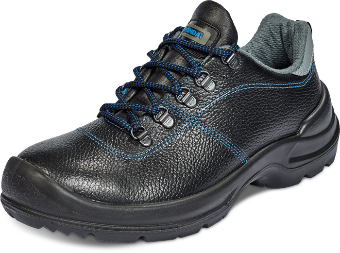Pracovní obuv bez tužinky, s antistatickou a protiskluzovou PU/PU podrážkou rezistentní kyselinám a olejům, absorpcí energie v patě, voděodolným svrškem z prodyšné kůže a reflexními komponenty pro zvýšení viditelnosti.