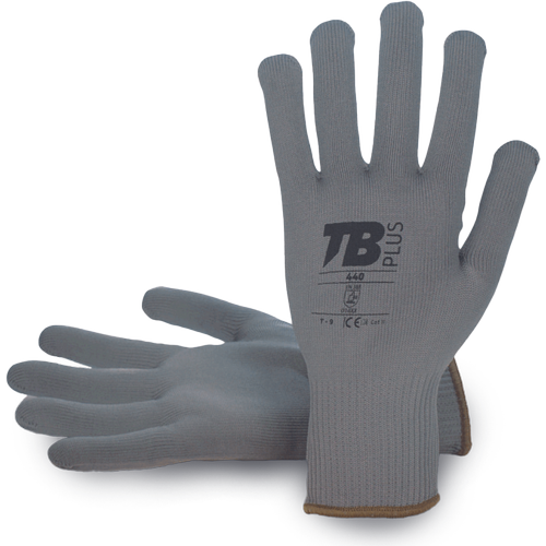 Šedé bezešvé nylonové rukavice. Pletené zápěstí.