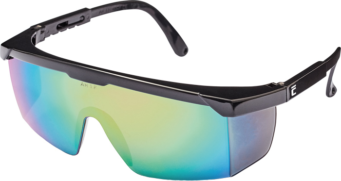 Ochranné brýle s polykarbonátovým zorníkem třídy 1F dle normy EN 166. Zorník s ochranou proti poškrábání a zamlžení. Ochrana proti letícím částicím s nízkou energií. Nastavitelná délka stranic. Žlutý zorník s ochranným filtrem proti UV záření dle normy EN 170. Kouřový a zrcadlový zorník s protislunečním filtrem dle normy EN 172