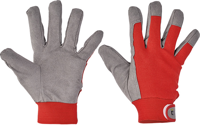 Rukavice z umělé kůže, hřbet bavlna / spandex, manžeta na suchý zip.