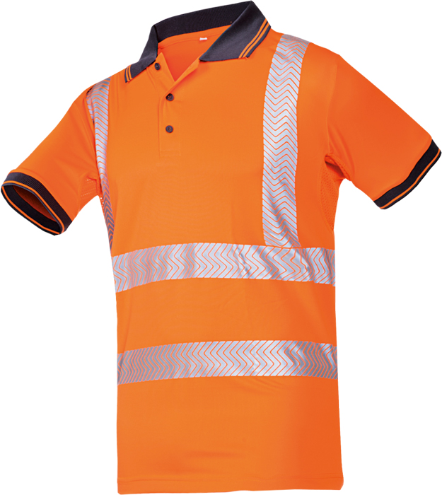 hi-vis polokošile se speciálními panely z materiálu mesh v podpaží; velmi nízká váha; nažehlené segmentové reflexní pruhy; anti-bakteriální úprava materiálu