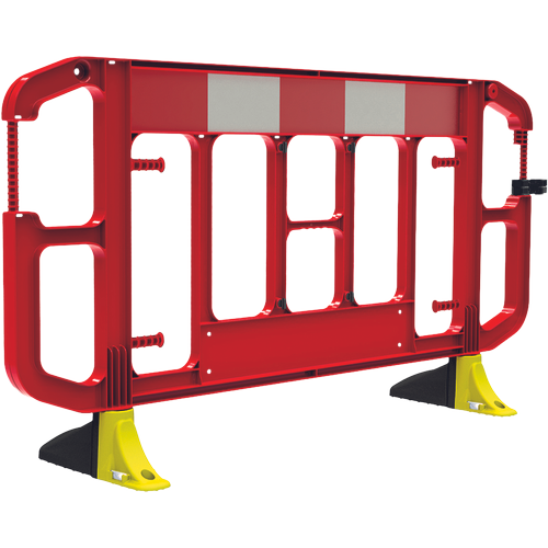 bezkonkurenční pevnost a odolnost; vyrobena z nejodolněnjších původních materiálů (Polypropylen, PVC); reflexní panel - třída R1 s vysokou reflexivitou, o 20% více odráží světlo než standardní reflexní material; ANTI-TRIP FEET - Prolisovaný design masivních nohou, který zabraňuje nehodám; SURELOCK™ Bariérová konektorová svorka – bariéry lze vzájemně spojovat i na nerovném povrchu a obrubnících; chytrá zámková konstrukce maximalizuje stabilitu při skladování a přepravě