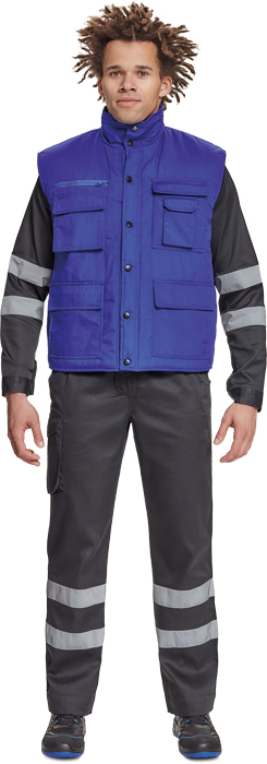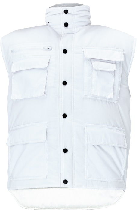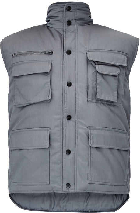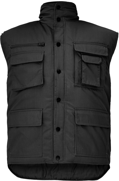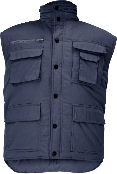 • zateplená vesta se stojáčkem • prodloužený díl na zádech • zapínání na plastové druky