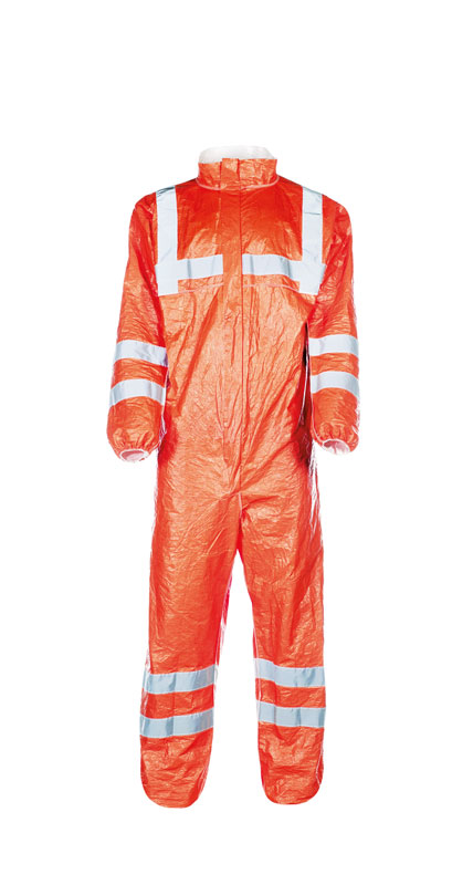Vysoce viditelný ochranný oblek s límcem, typ 5/6. Chráni proti prachu a lehkému kapalnému postřiku. Vhodný pro práce v údržbě silnic a železnic, na letištích, v petrochemickém a plynárenském průmyslu, zpracování odpadů, likvidaci havárií atd. Šité švy. Elastické manžety a lemy nohavic, elastický pas. Antistatická úprava na vnitřní straně.