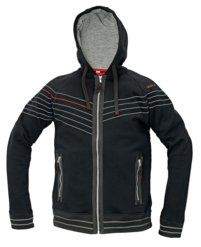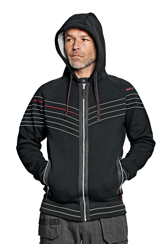 • pánská mikina na zip s kapucí ze směsového uvnitř počesaného výplňku • 2 postranní kapsy na zip • léga z kontrastního materiálu kolem zipů • dvojitá kapuce s kontrastní barvou podšívky • pevné úpletové patenty na rukávech a ve spodním obvodu • dekorativní šňůrky v kapuci v kontrastní barvě • potisk na hrudi a rukávech • výšivka Assent na rukávu