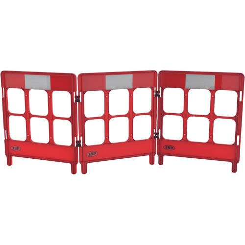 WorkGate® je robustní mini bariéra, sddává se jako verze se 3 nebo 4 branami, které nabízejí velmi univerzální řešení pro mnoho prostředí a požadavků. Reflexní panel Plně reflexní panel splňující požadavky EN 12899-1. Flexibilní propojení Černé přilehlé klipy poskytují flexibilní konfigurace více poloh. Pohodlné rukojeti s tvarovanými úchopy pro prsty usnadňují manipulaci s WorkGate®. Značka dodavatele Velká plocha umožňující použití detailů dodavatele. Volitelné nožky proti zakopnutí vytvářejí stabilnější WorkGate® pro lineární použití. Možnosti WorkGate® lze propojit do čtverce, trojúhelníku nebo do jedné linie, což je praktické pro většinu použití a prostředí. Recyklovatelné Neobsahuje žádné kovové části, takže je ideální pro práci v elektrickém prostředí a snadno se recykluje. Dočasné značení Lokalizační otvory umožňují osazení zdvořilostních nebo pěších značek.