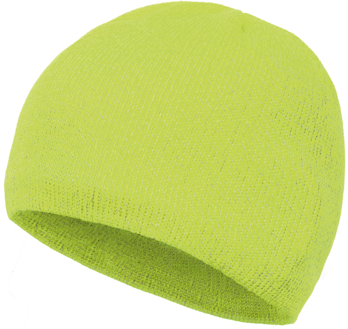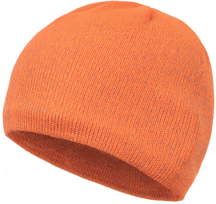 zimní pletená čepice; vnitřek polyester fleece 3M; vetkané reflexní vlákno.