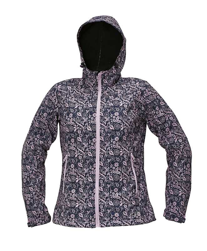 • dámská celopotištěná softshellová bunda s kapucí • atraktivní potisk a přiléhavý střih • 2 postranní kapsy na zip • 2 vnitřní kapsy • nastavitelná šíře rukávů prostřednictvím velcro • nastavitená šíře spodního obvodu prostřednictvím stahovací šňůrky • nastavitený obvod kapuce díky stahovací šňůrce