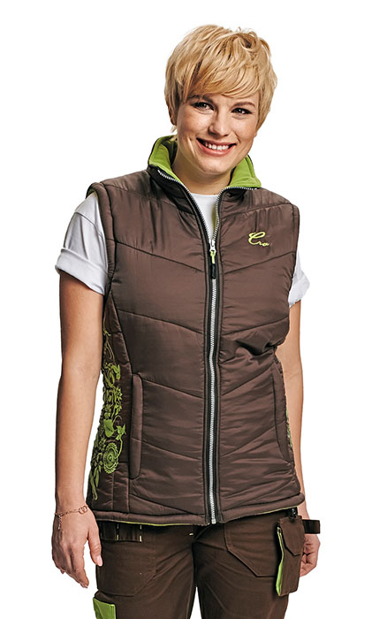 • dámská zateplená vesta se stojáčkem • atraktivní květinový potisk po stranách • mírně prodloužený zadní díl • projmutý střih • perfektní doplněk pracovní kolekce Yowie pro chladné dny