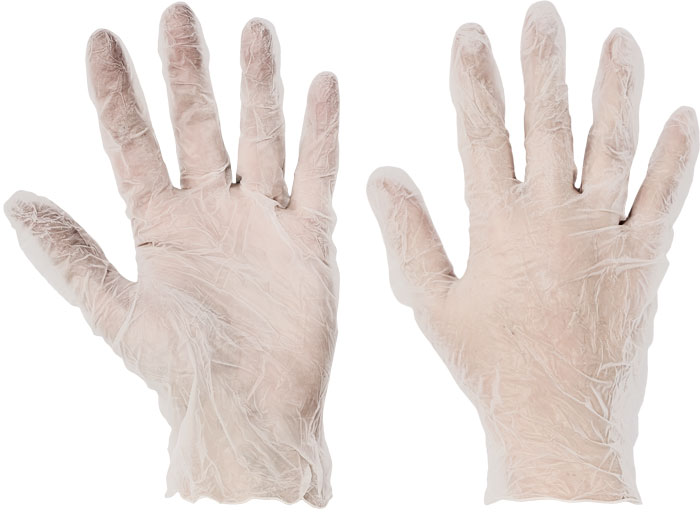 Jednorázové vinylové nepudrované rukavice vhodné pro krátkodobý styk s netukovými potravinami.