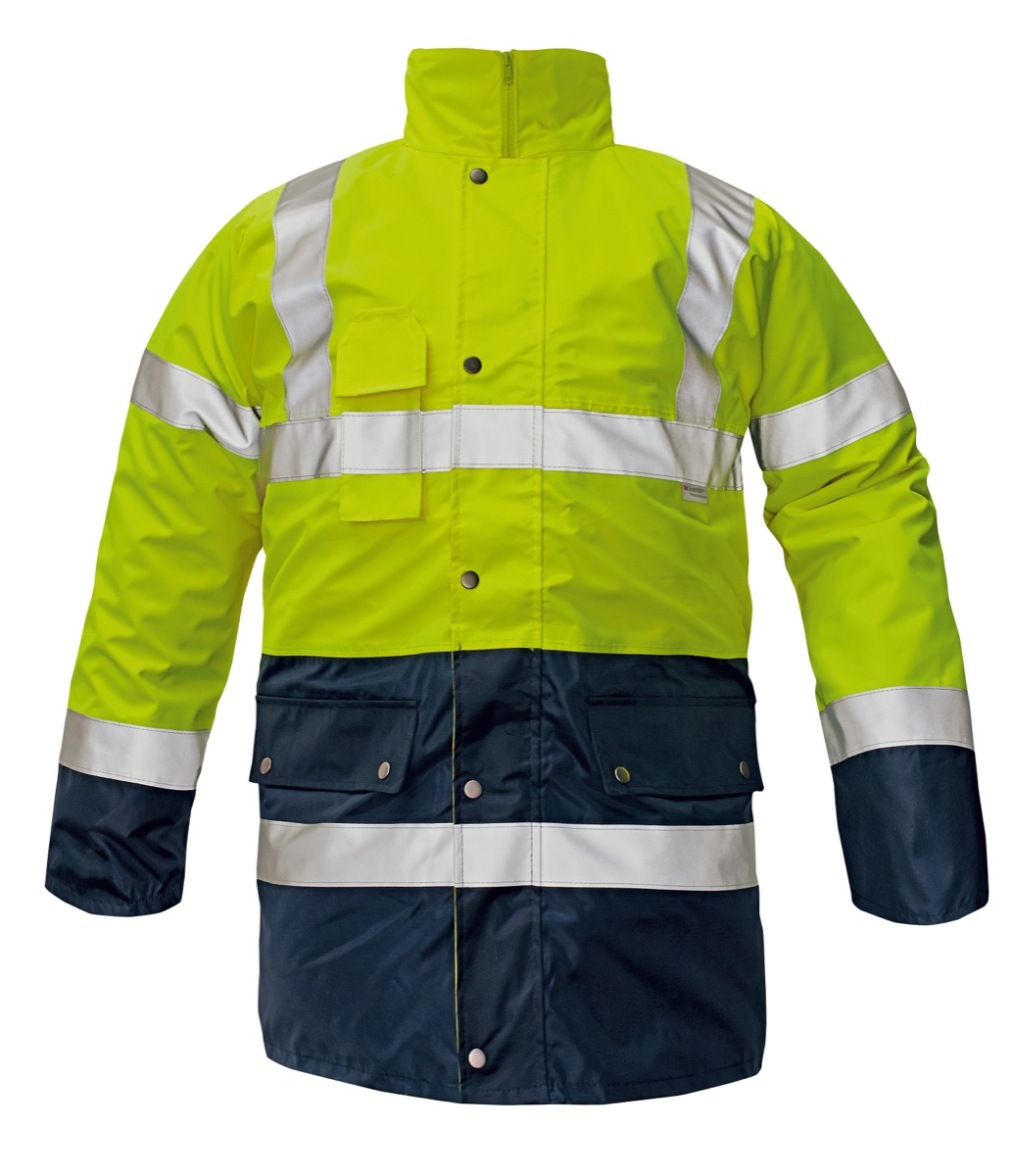 • zateplená “Hi-Vis” bunda 4 v 1 s reflexními pruhy • EN ISO 20471: 2013 • EN 343 3,1 • odepínatelná samostatně nositelná svrchní větrovka, spodní bunda a ves • kapuce integrovaná v límci • švy podlepené • voděodolná • vnitřní pletené manžety • reflexní pásky 3M