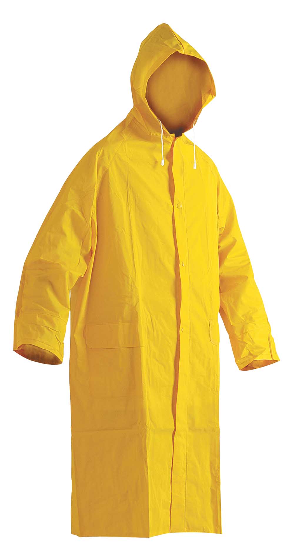 • voděodolný ¾ plášť s kapucí • prodloužená délka • všechny spojovací švy jsou zatavené • materiál s nánosem PVC • dvě přední kapsy kryté légami proti průniku vody • vnitřní manžeta na gumu • ventilace na zádech a v podpaží