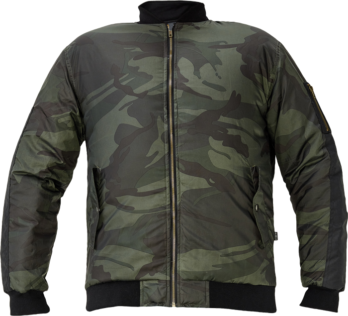 pánská zateplená bunda pilot; 2 postranní lištové kapsy; 1 vnitřní kapsa na mobil; pružné náplety na koncích rukávů, spodním obvodu a v límci; oblíbený a praktický maskáčový vzor