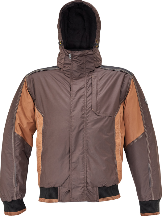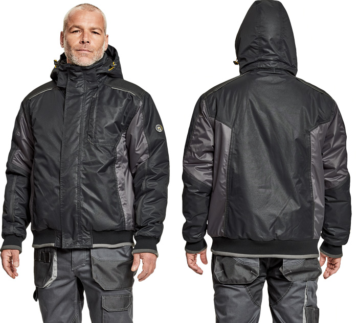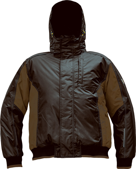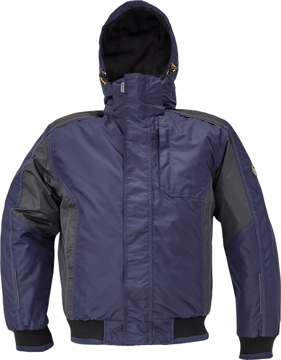 pánská zimní pilotka s odepínací kapucí, 1 náprsní kapsa na zip, 2 boční kapsy na zip, 2 vnitřní kapsy na zip, hlavní zip krytý légou se zapínáním na suchý zip, stahovací šňůrka v kapuci, fleece v límci a kapuci, elastické žebrované náplety na rukávech a spodním dílu, možnost strojního vyšívání, reflektivní prvky v barevném odstínu