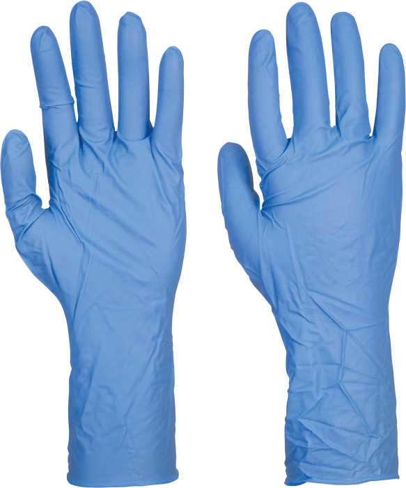 Povrch z nitrilové pryže, který je velmi odolný vůči olejům, mazivům a ropným produktům. Odolný vůči chemikáliím, kyselinám a neketonickým rozpouštědlům; obouruké; AQL 1.5; vnitřek bez pudru nezpůsobuje alergie; délka 30 cm a tloušťka 0,38 kvůli lepší ochraně a životnosti.
