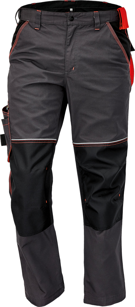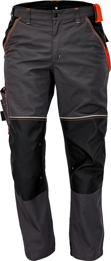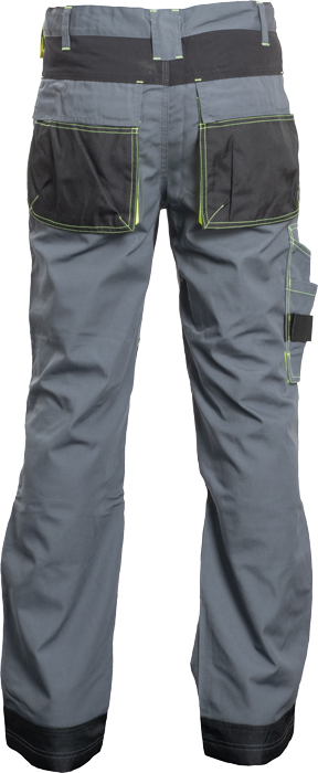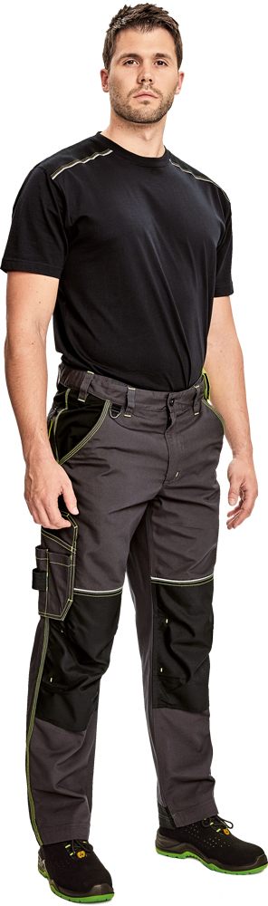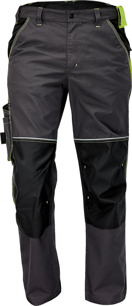 • pánské pracovní klahoty s elastickým pasem • 2 postranními kapsami • 1 multifunkční kapsou na nohavici • D kroužek pro přichycení identifikační karty • 2 nakládané zadní kapsy s patkou • poutko na nářadí v kontrastní barvě • zesílená oblast kolen s možností vkládání kolenních výztuh • záložka na nohavici umožňující prodloužení délky až o 5cm • zesílená zadní strana spodku nohavice • dekorativní prošití a kontrastní prvky v hi-vis barvě