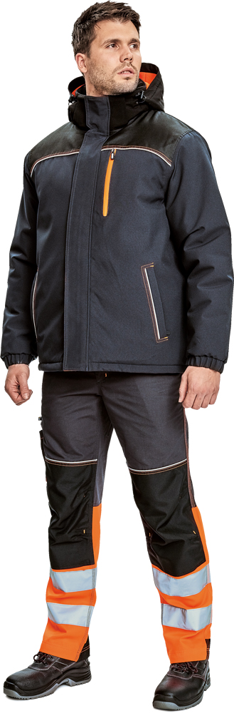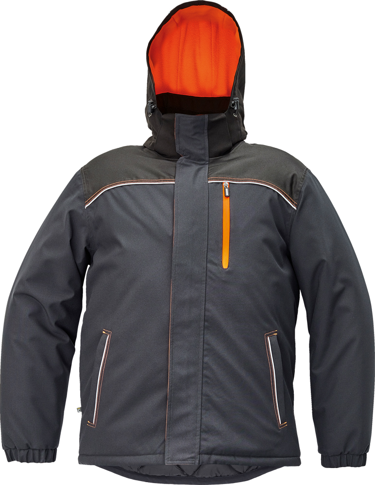 • pánská zateplená zimní bunda s odnímatelnou kapucí • prodloužený zadní díl • zesílené část v oblasti ramen • náprsní kapsa na zip v kontrastní barvě • 2 postranní lištové kapsy • 2 uzavíratelné vnitřní kapsy • možnost vstupu pro výšivku či potisk • nastavitelná šíře spodního obvodu • reflektivní paspulka lemující sedlo a boční kapsy • dekorativní prošití v kontrastní hi-vis barvě
