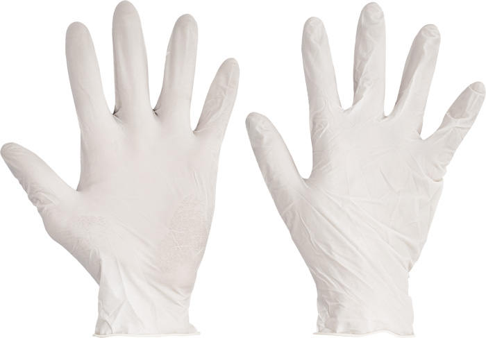 Jednorázové latexové pudrované rukavice vhodné pro krátkodobý styk s potravinami.
