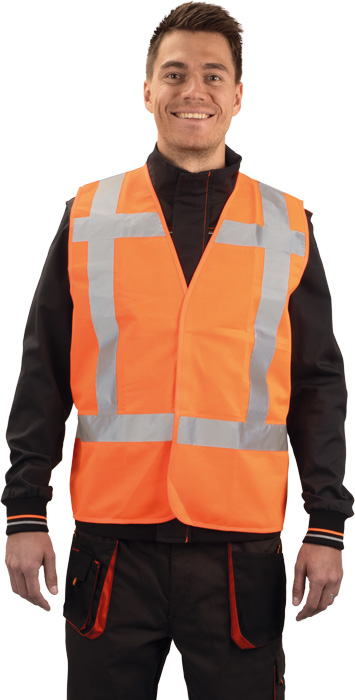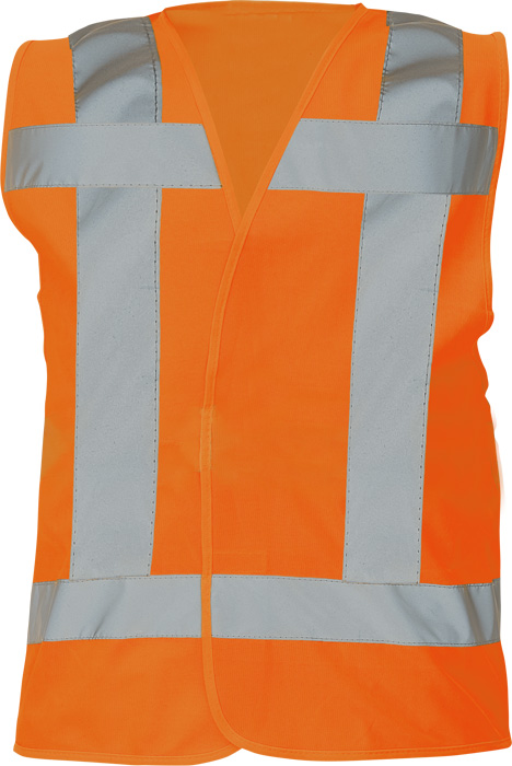 vesta s vysokou viditelností; retro reflexní pásky; certifikováno dle RIS 3279 TOM pro použití na železnicích